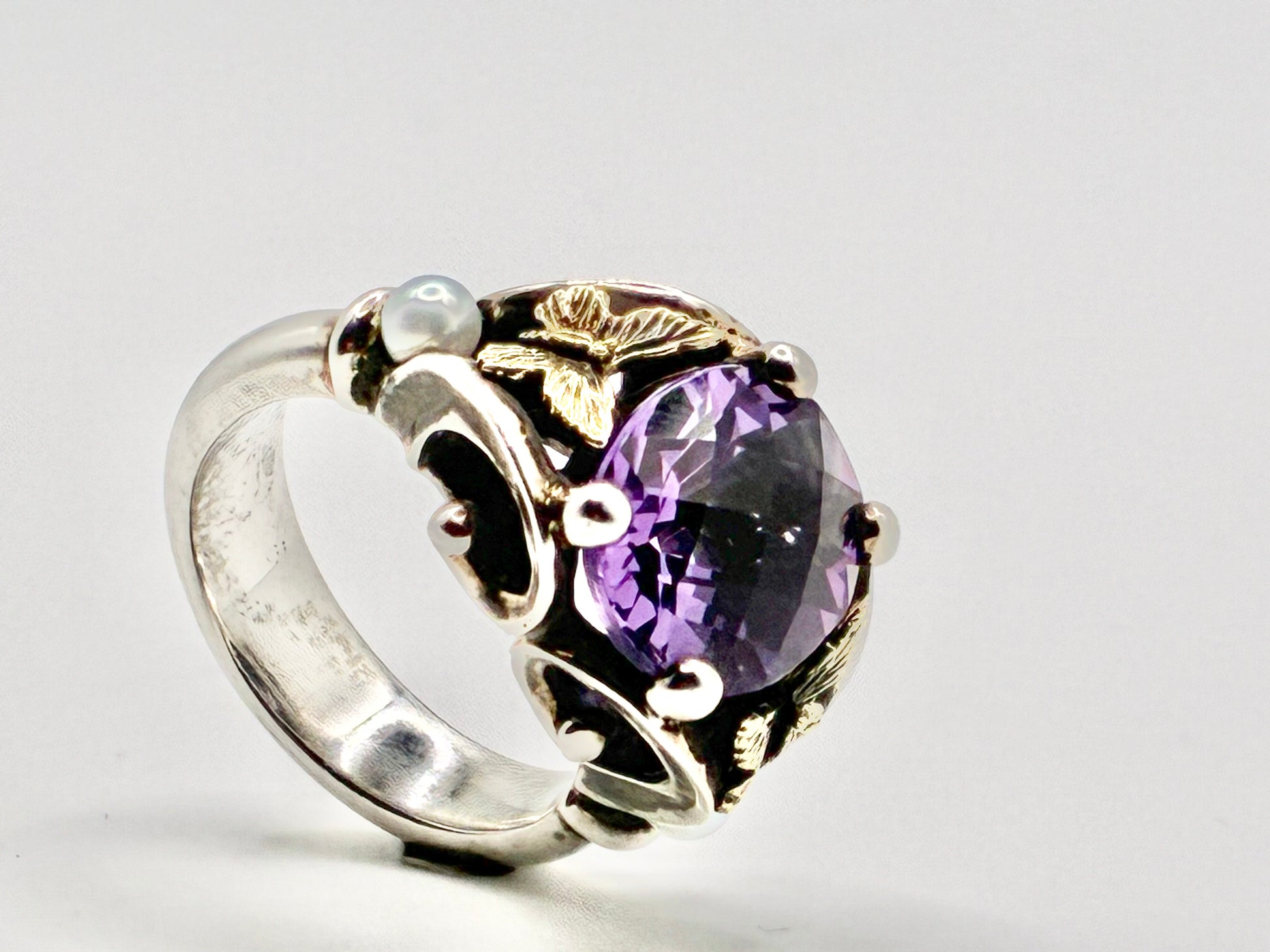 Ann King 925/18K Amethyst & Pearl Ring – Size 6