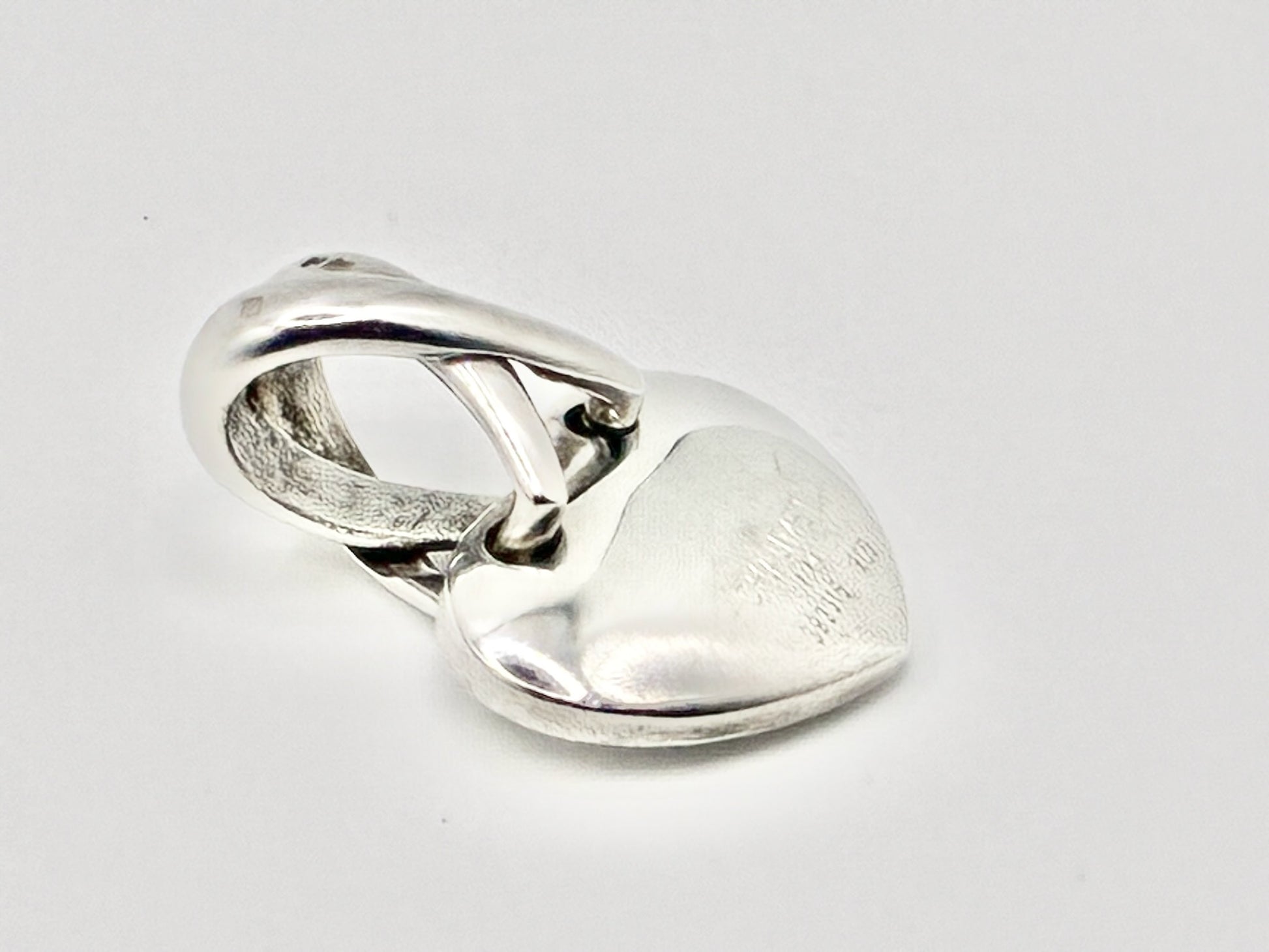 Sculptural Chaumet heart pendant crowned with the signature crossed “Liens” bail. Crafted in solid 925 sterling silver with beautiful weight and presence. Light surface scratches visible under close inspection.