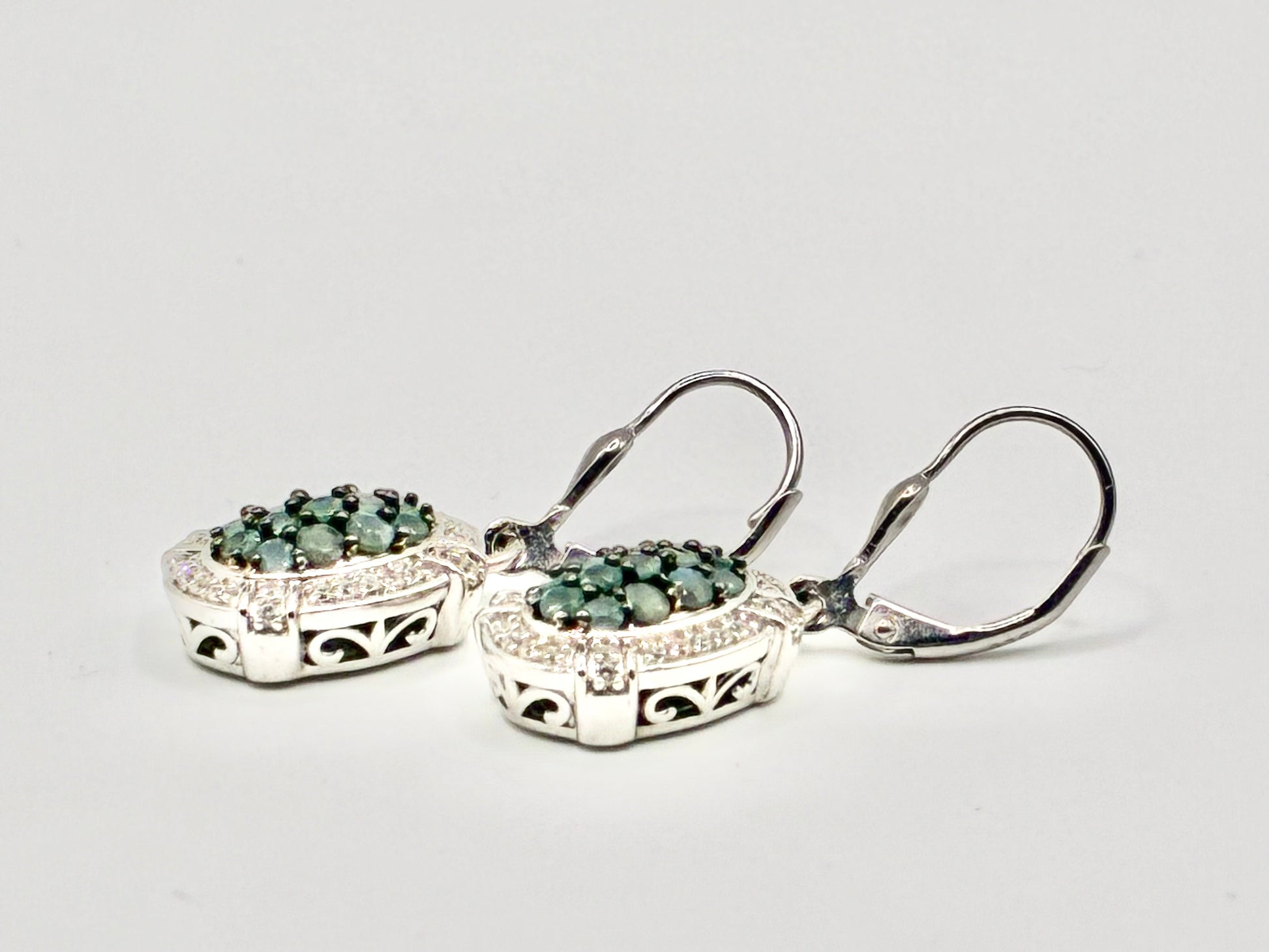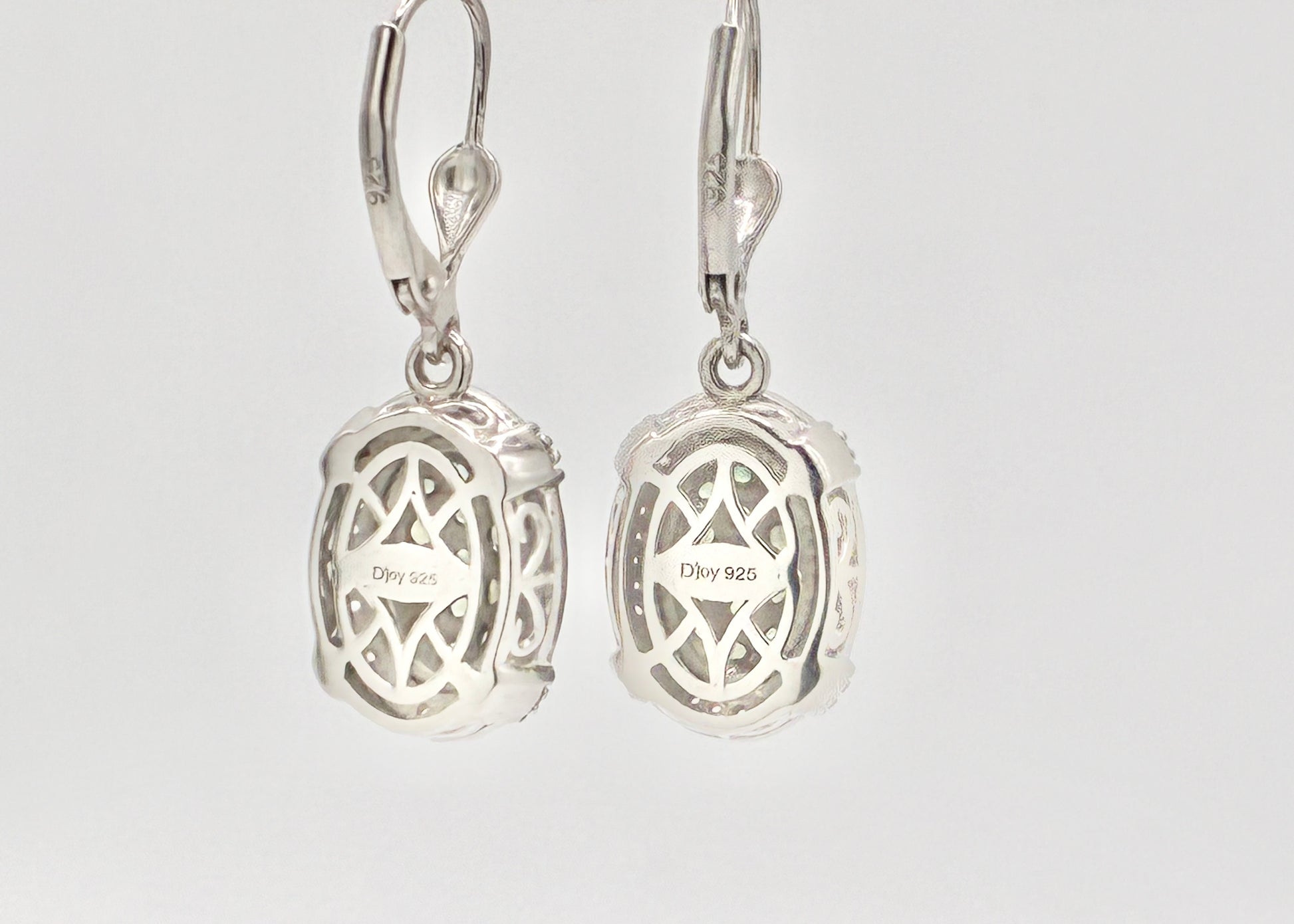 The oval drop settings are crafted in sterling silver with intricate openwork along the sides, adding dimension and refinement from every angle. Finished with secure lever-back closures for comfortable wear, these earrings offer graceful movement and a timeless silhouette. Made in India and hallmarked D’Joy 925, they are a sophisticated statement piece suitable for both everyday elegance and special occasions.