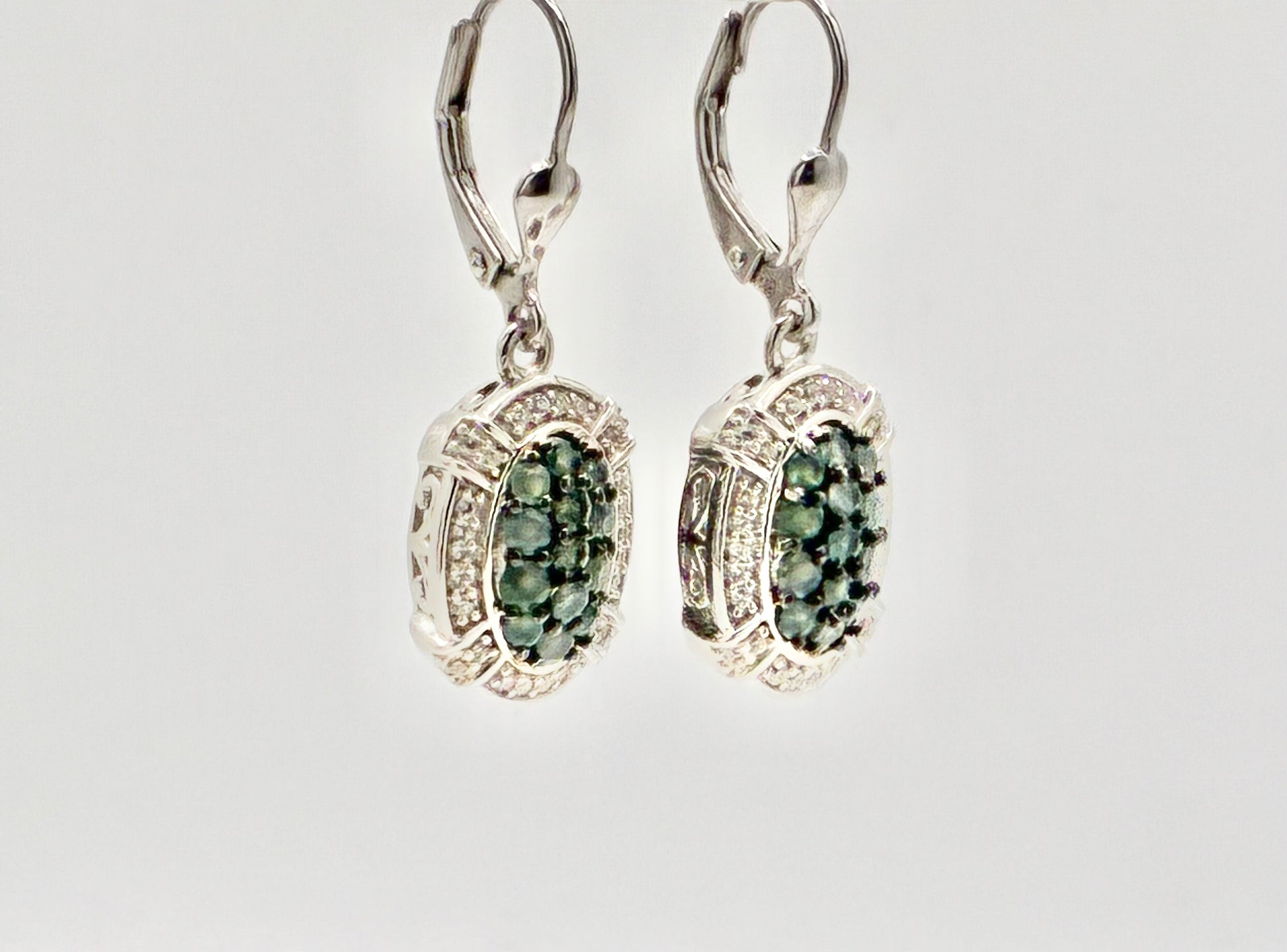 Striking and finely crafted, these D’Joy Narsipatnam alexandrite and white zircon earrings showcase an elegant Art Deco–inspired design with exceptional detail. Each earring features a rich cluster of alexandrite stones set at the center, framed by a halo of sparkling white zircon accents that enhance brilliance and contrast.