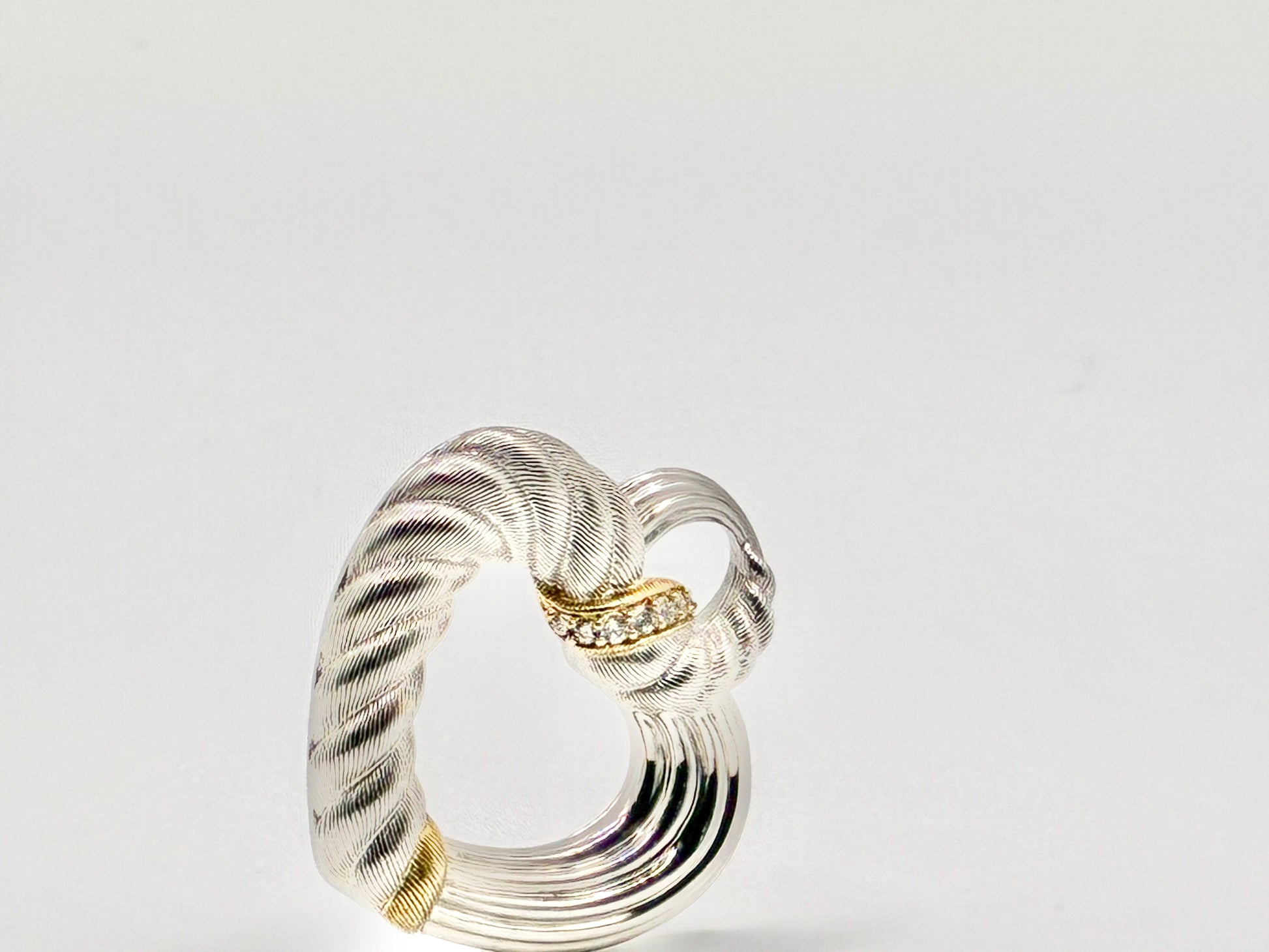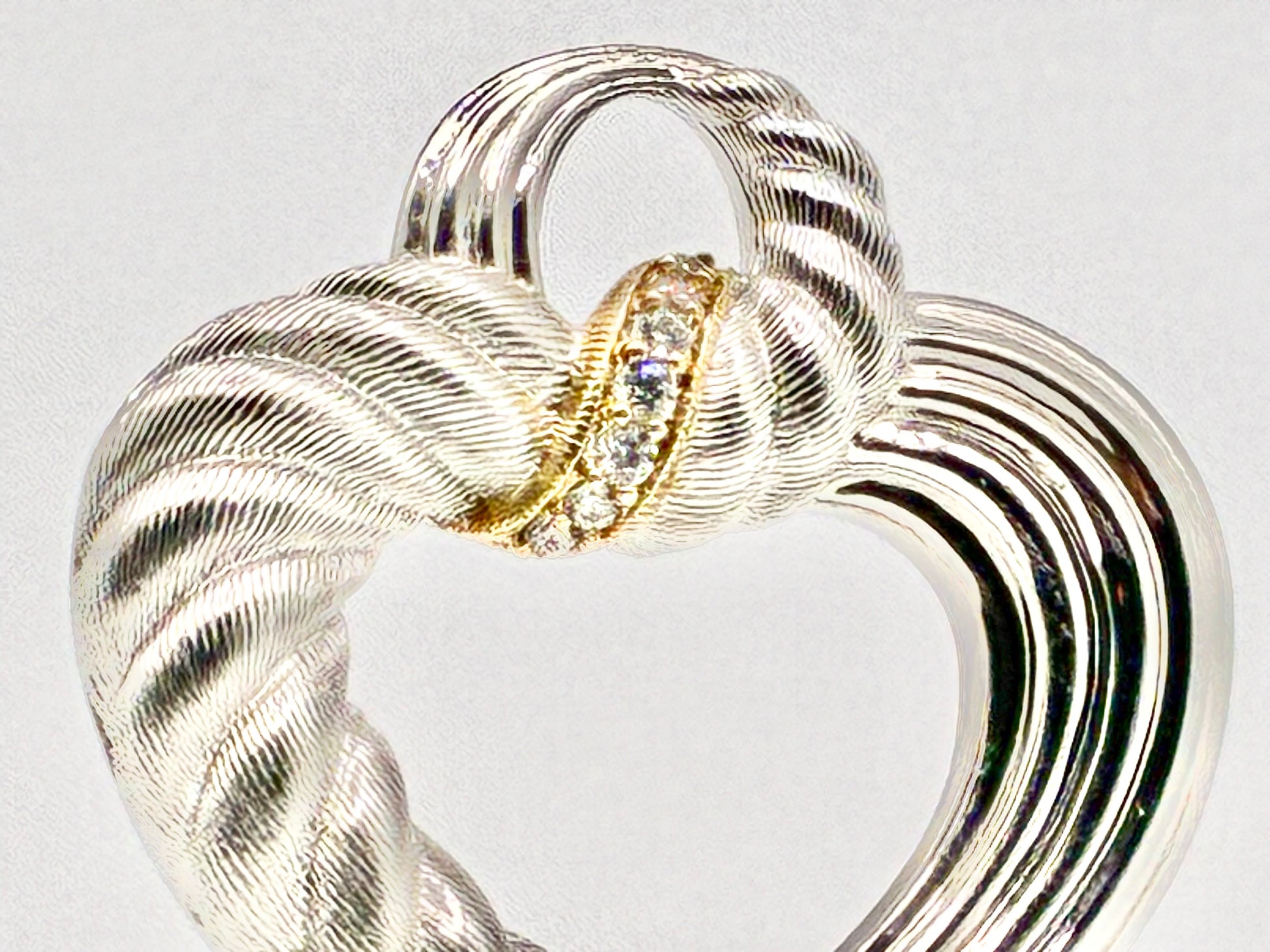 Elegant open-heart pendant in sterling silver with Judith Ripka’s signature cable and ridged textures. A band of sparkling cubic zirconia adds a touch of brilliance at the crossover.