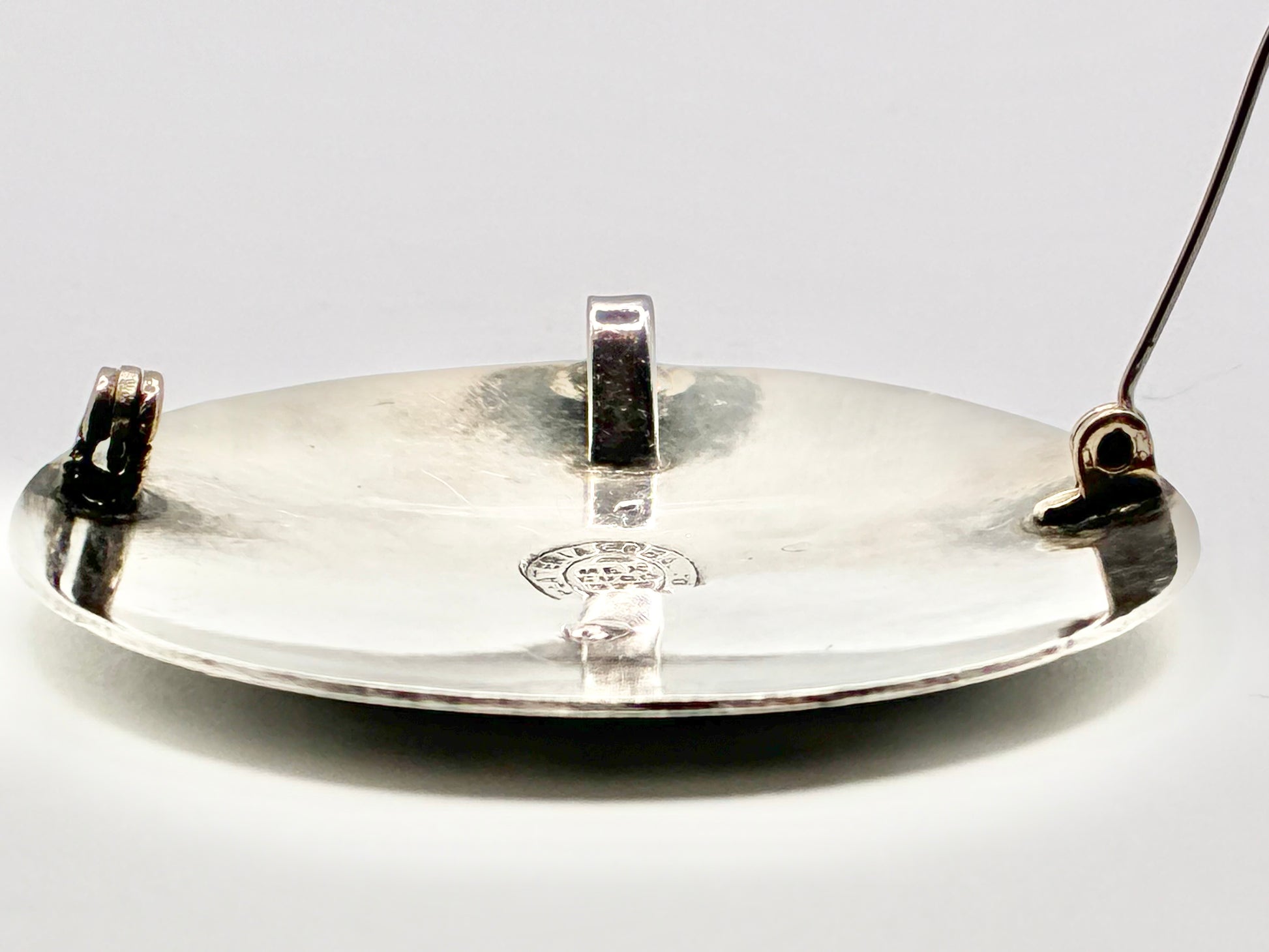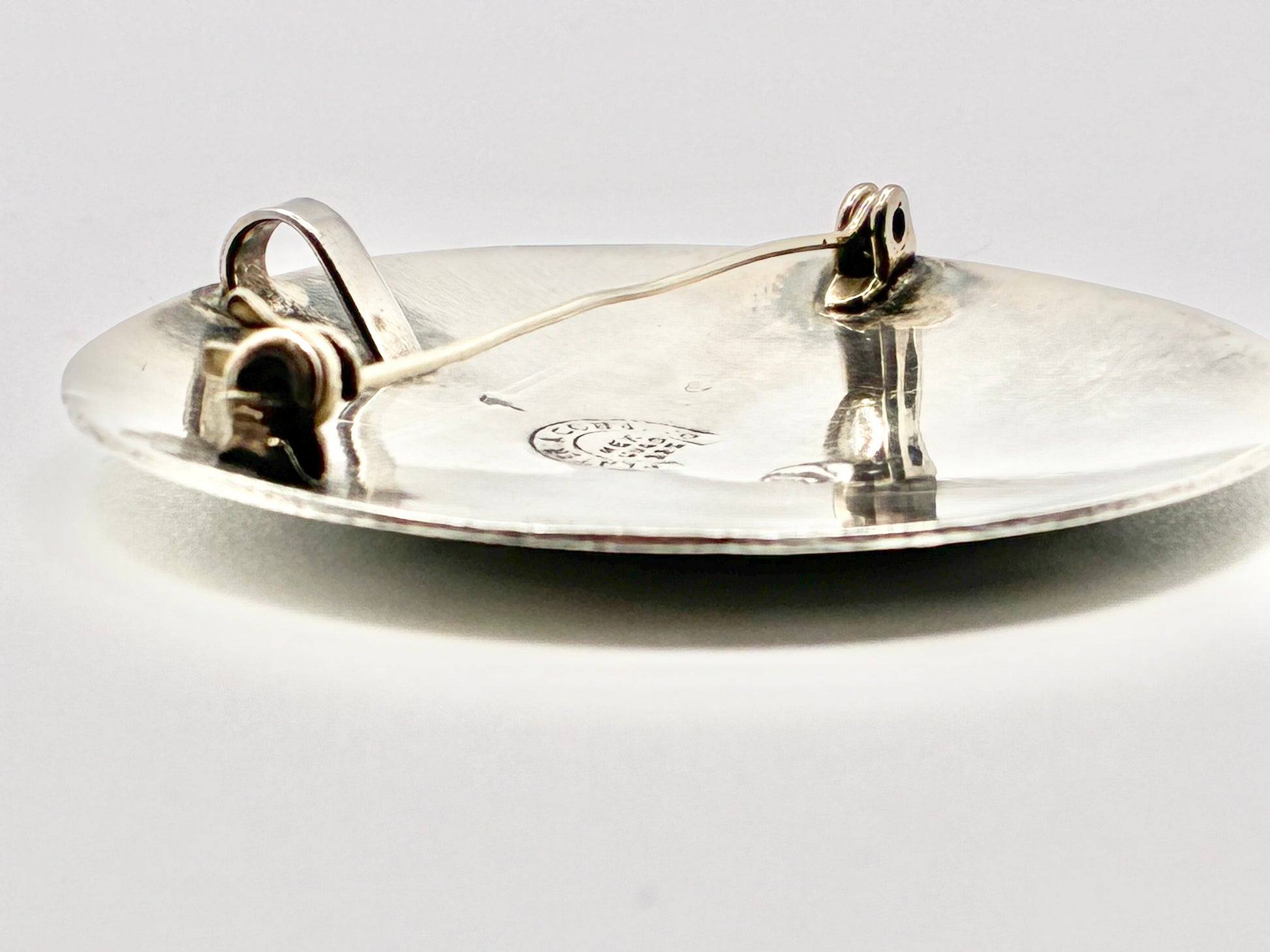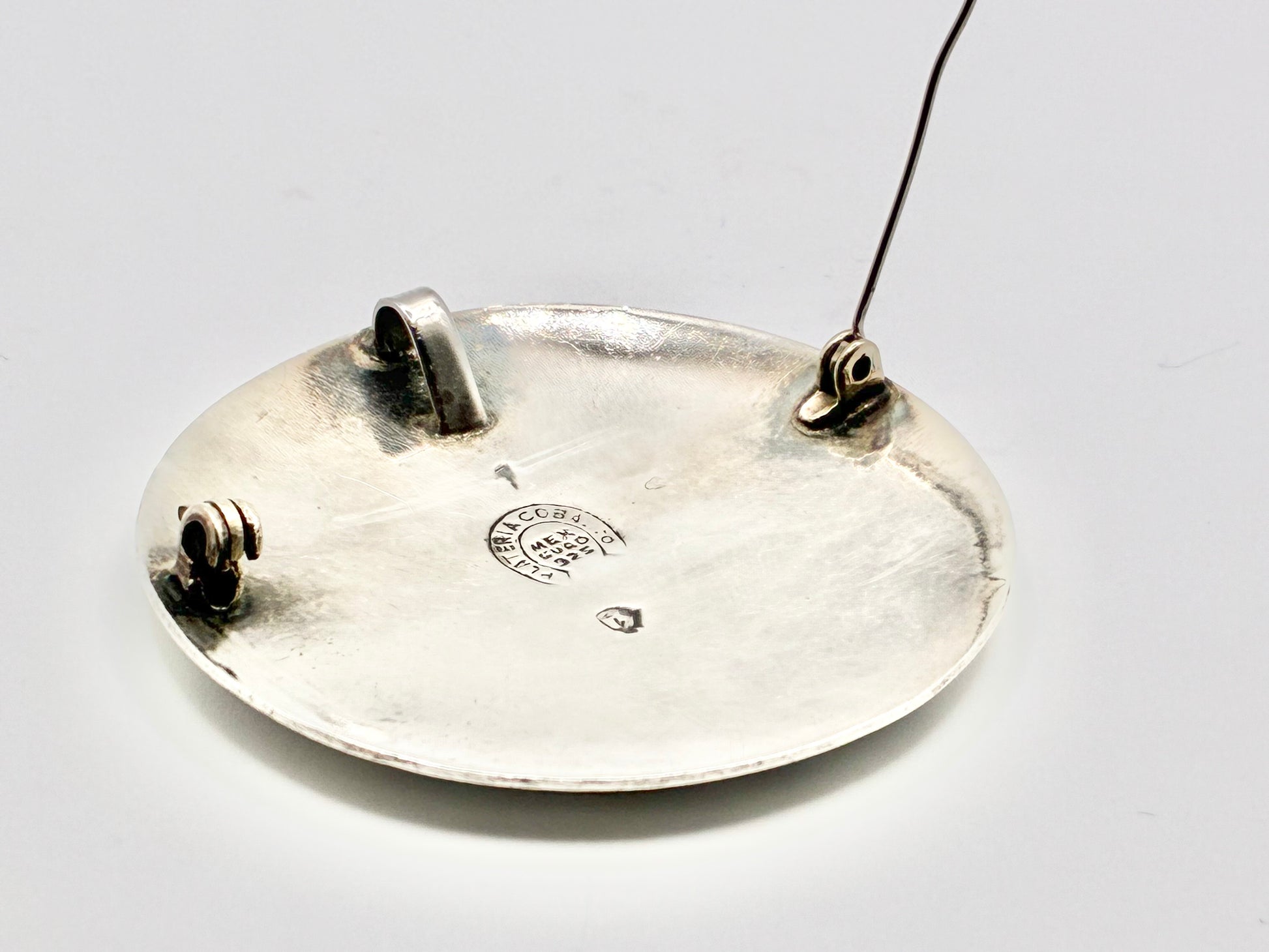 Mexican Sterling Silver Engraved Disc Brooch/Pendant