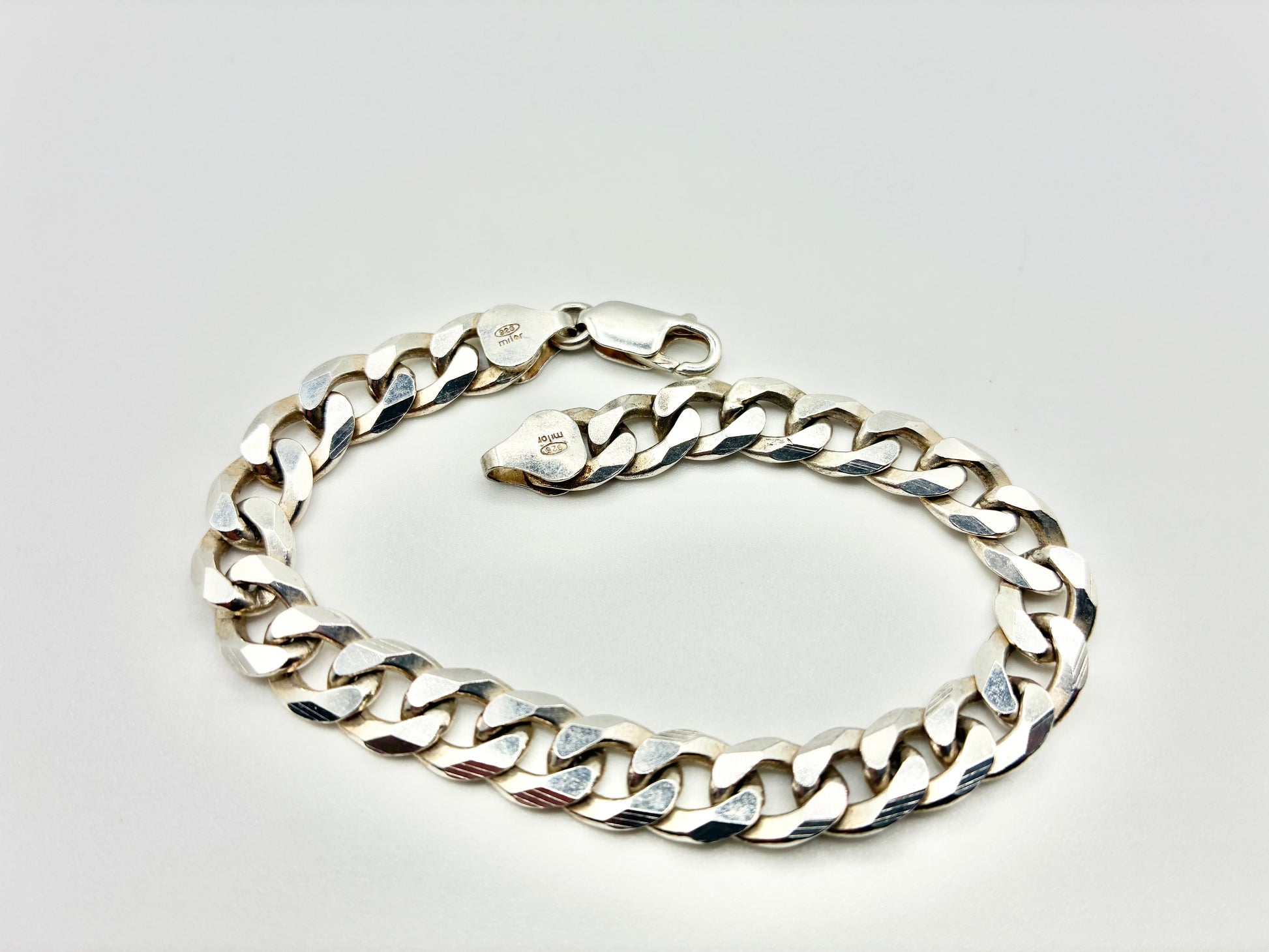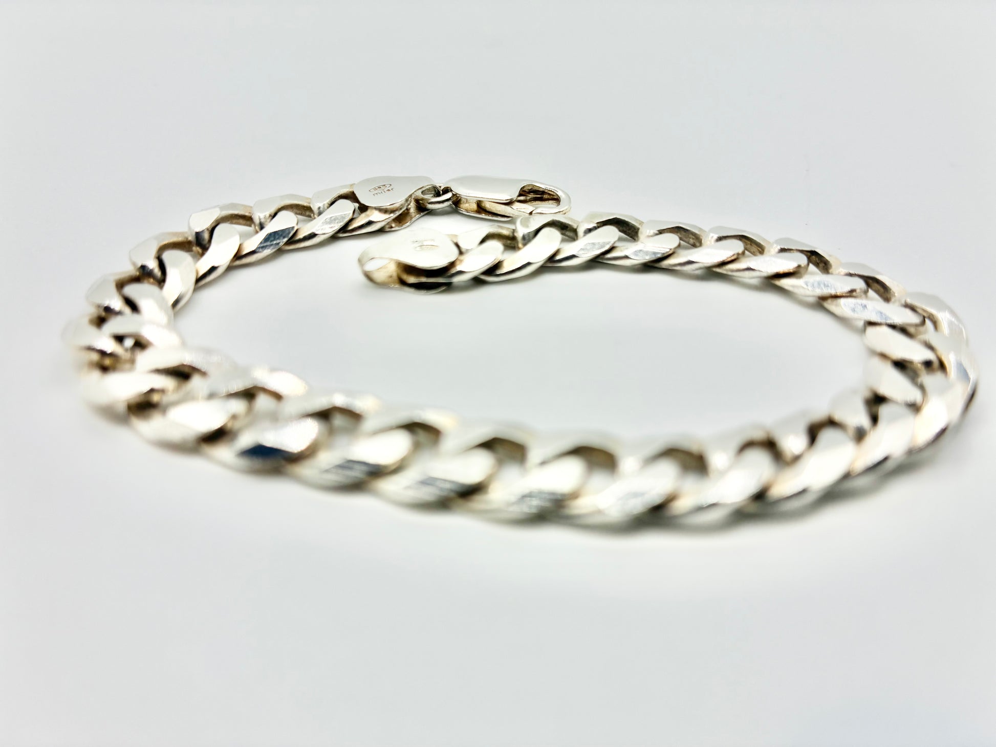 Bold, faceted shine from a classic Italian maker. This Milor bracelet features a substantial diamond-cut curb (Cuban) link that lays flat and catches the light with crisp facets. Finished with a sturdy lobster clasp and end tabs stamped Milor and 925.