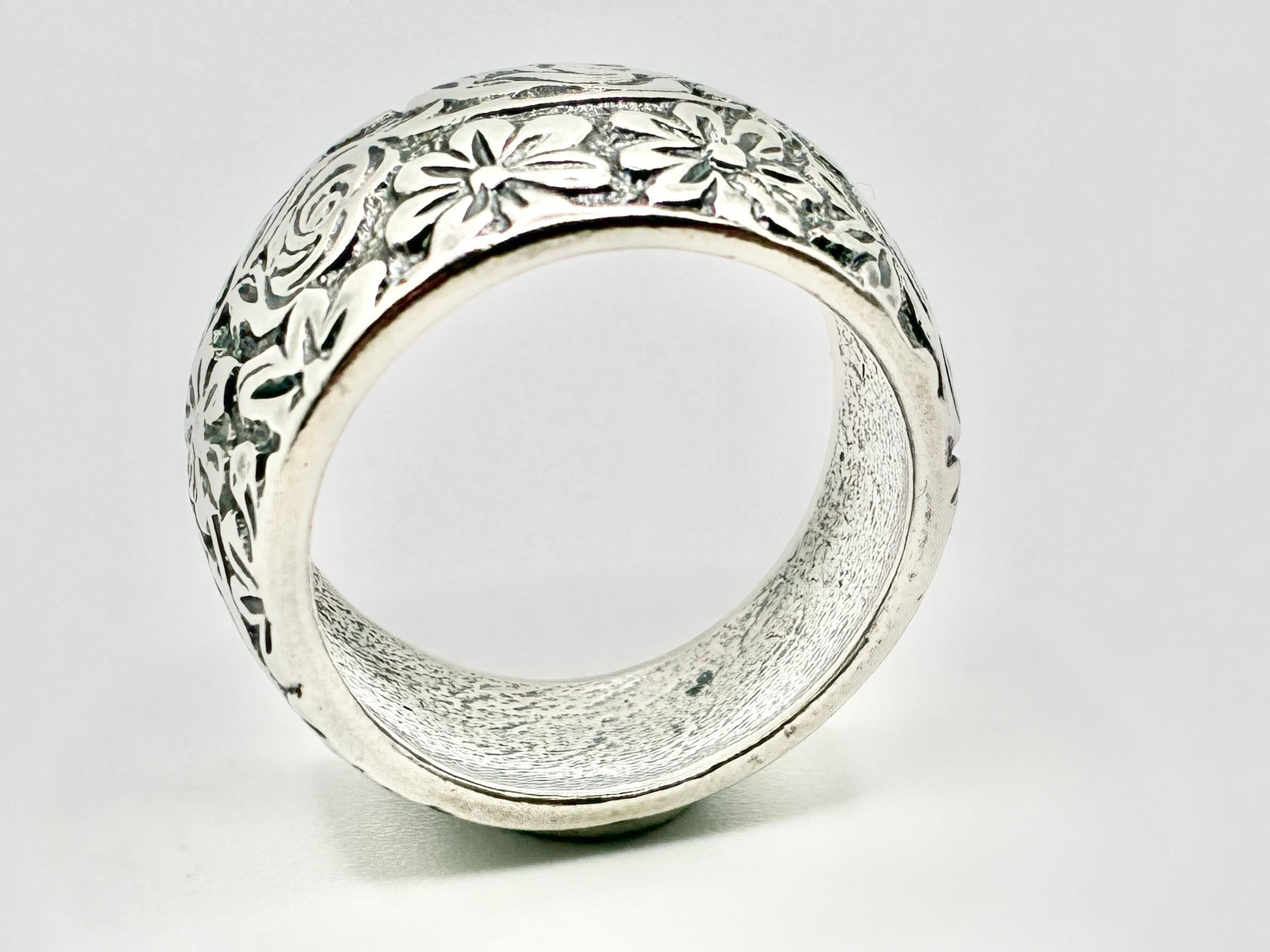 Silpada Sterling Silver Floral Wide Band Ring – Size 8