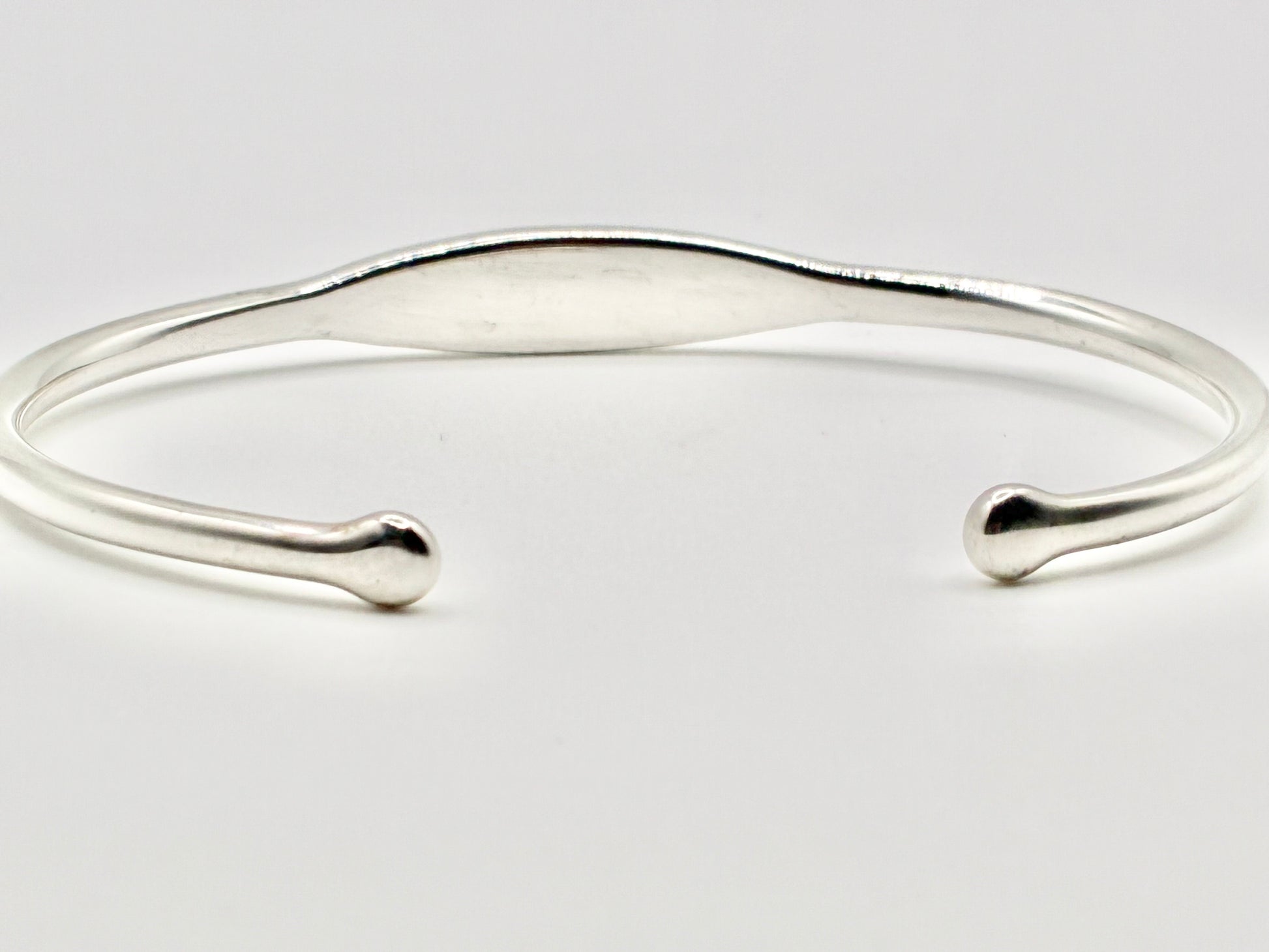 A sweet everyday reminder. This solid sterling cuff features a slim, low-profile front engraved in flowing script with Loved. Rounded end caps keep it comfortable, and the classic silver finish makes it stack beautifully with bangles and chains.