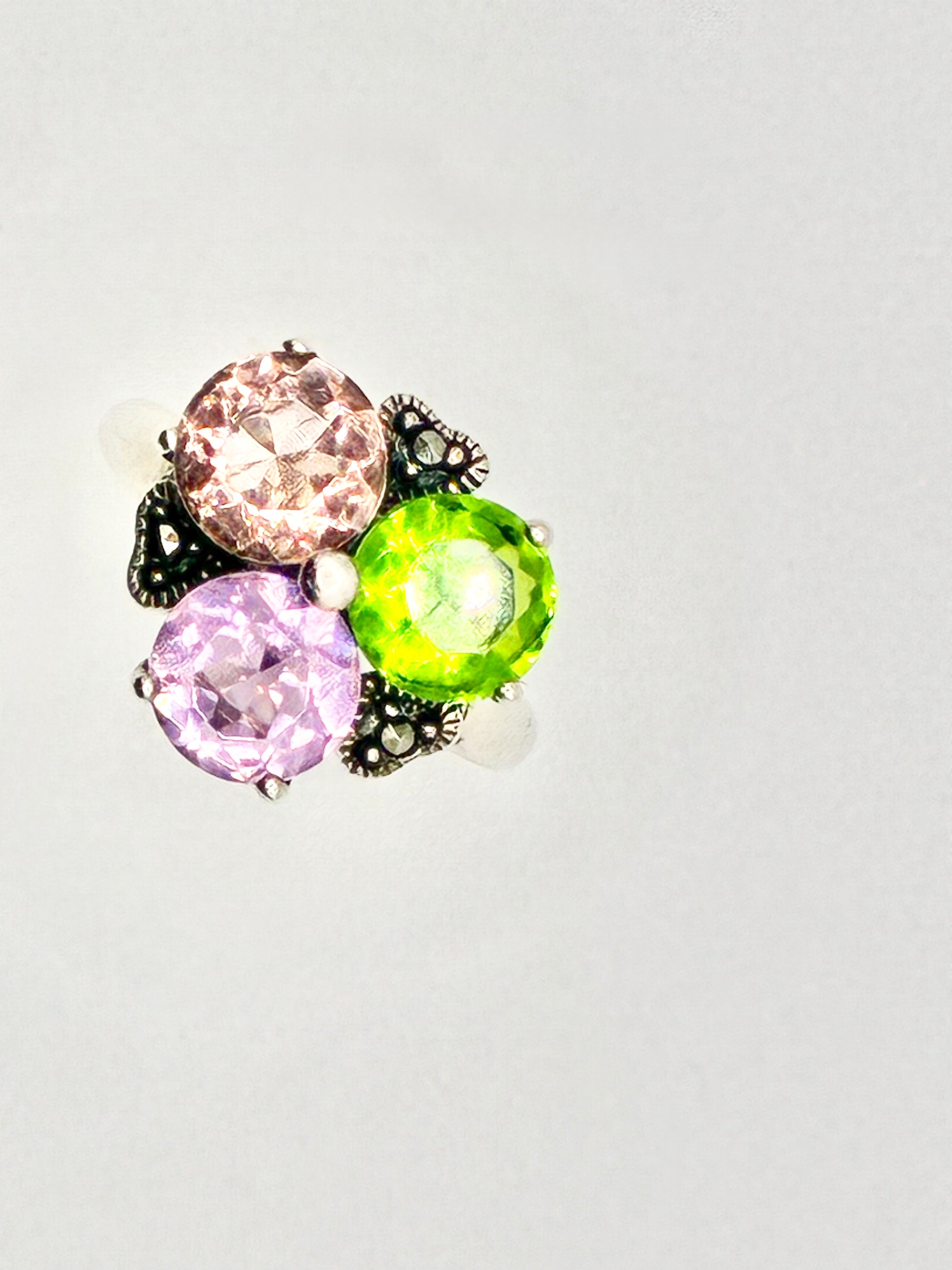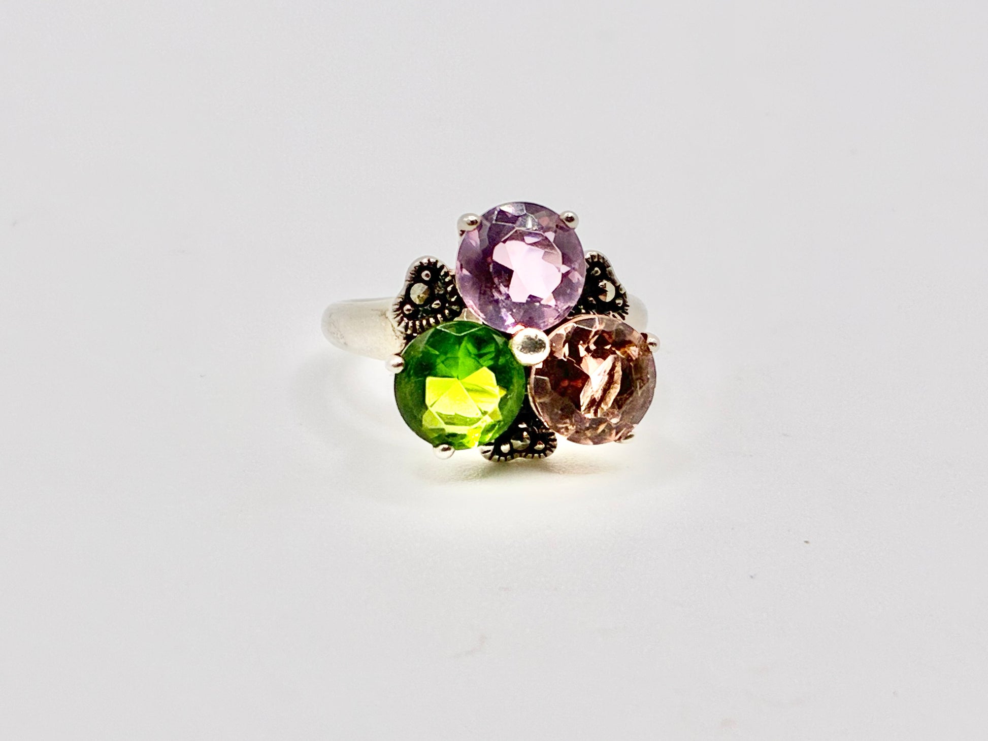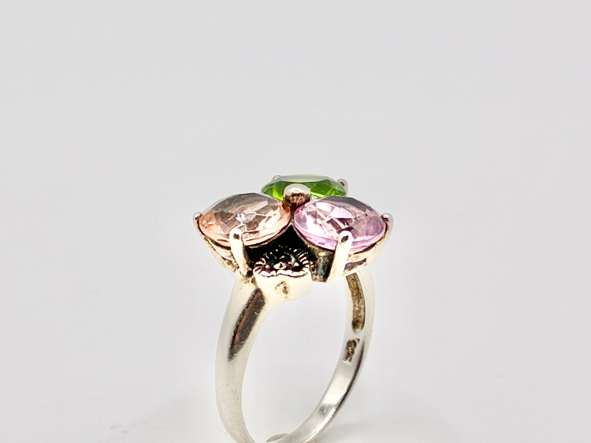 Sterling Silver 925 Multi-Stone Cluster Ring – Size 8