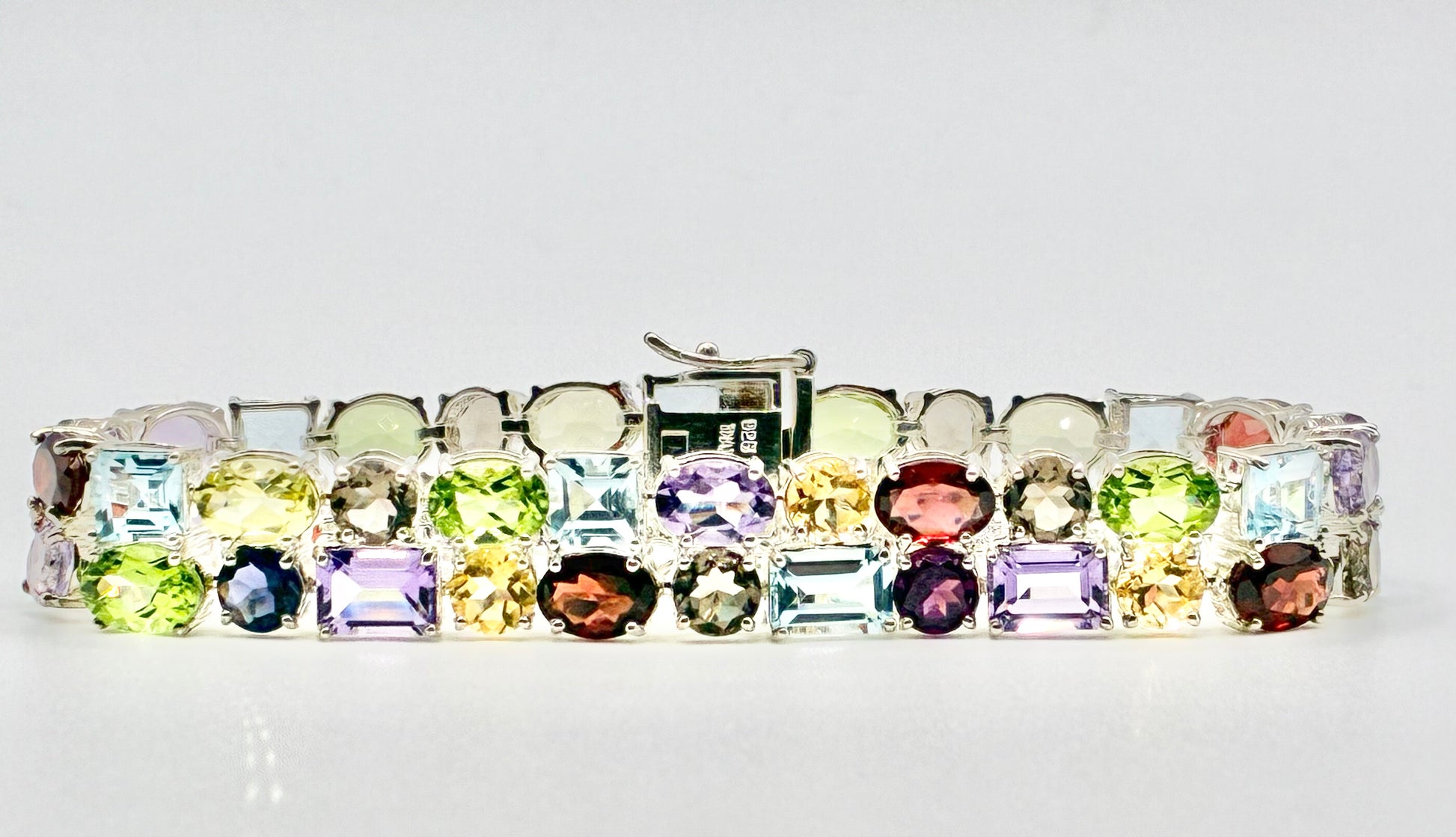 Sterling Silver Multi-Gem Tennis Bracelet – 7”