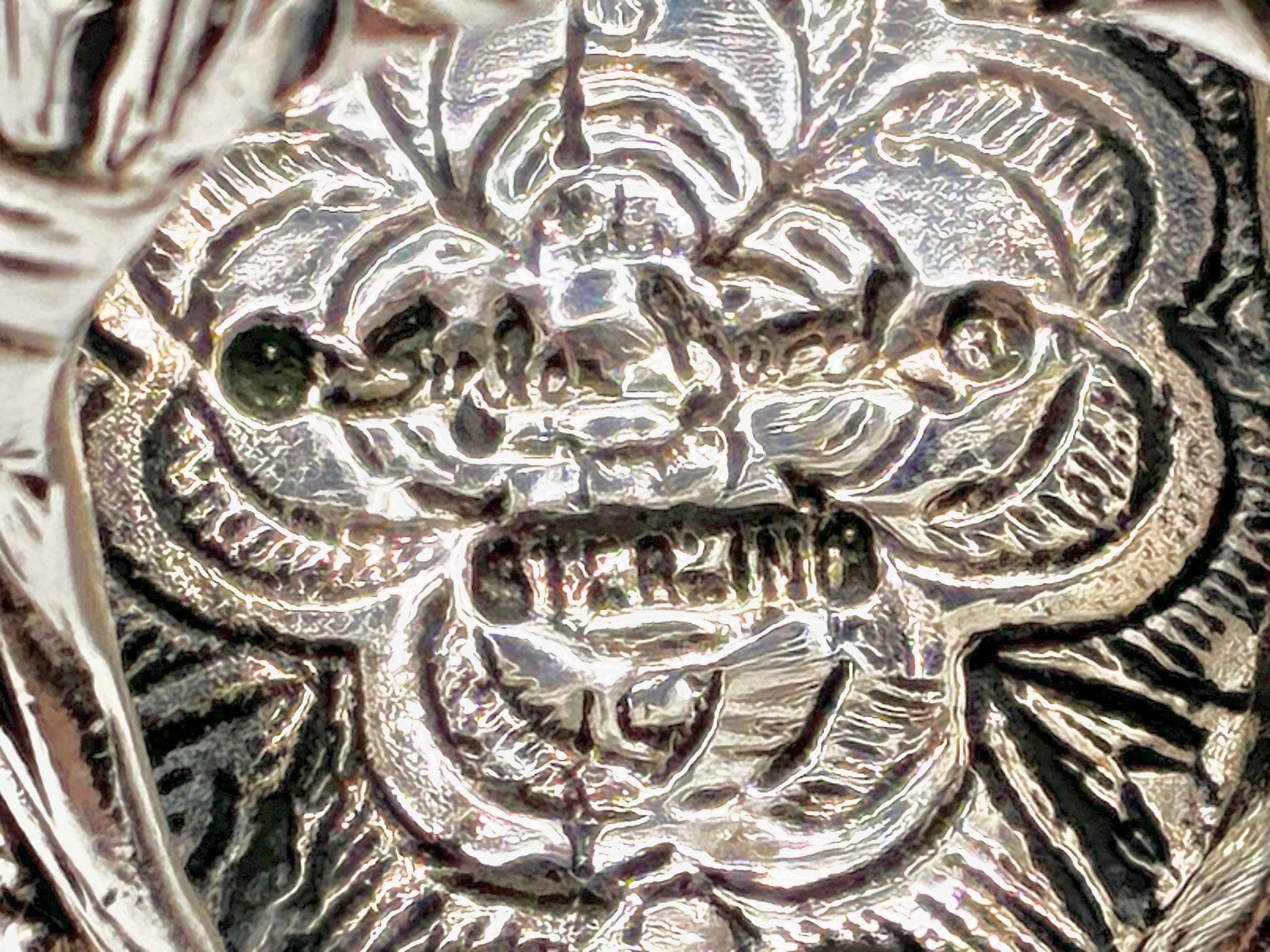 Stone: Large multicolored cabochon (likely jasper/agate; not gem-lab tested)