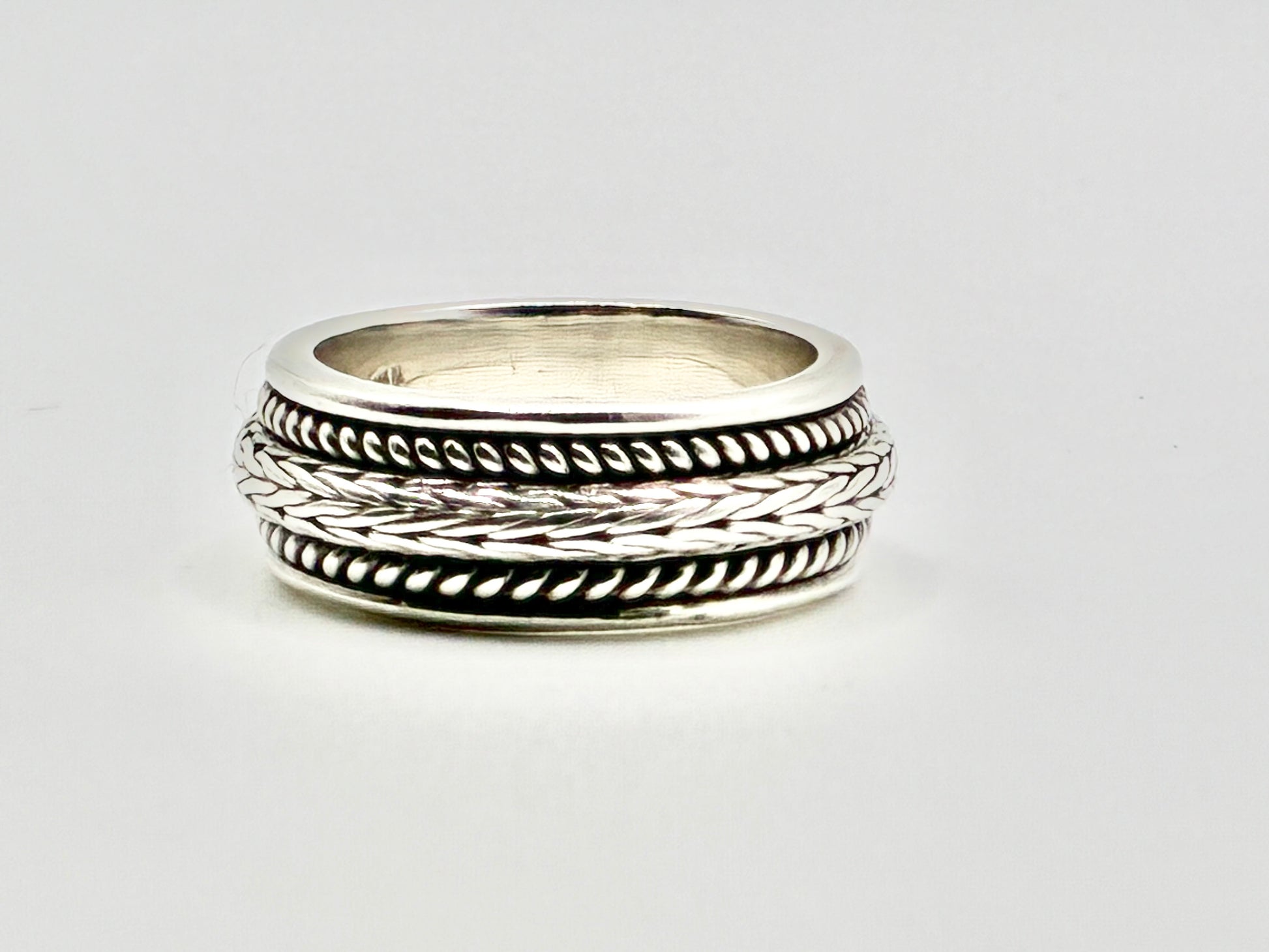 Suarti Bali Sterling Silver Wheat Spinner Band — Size 8