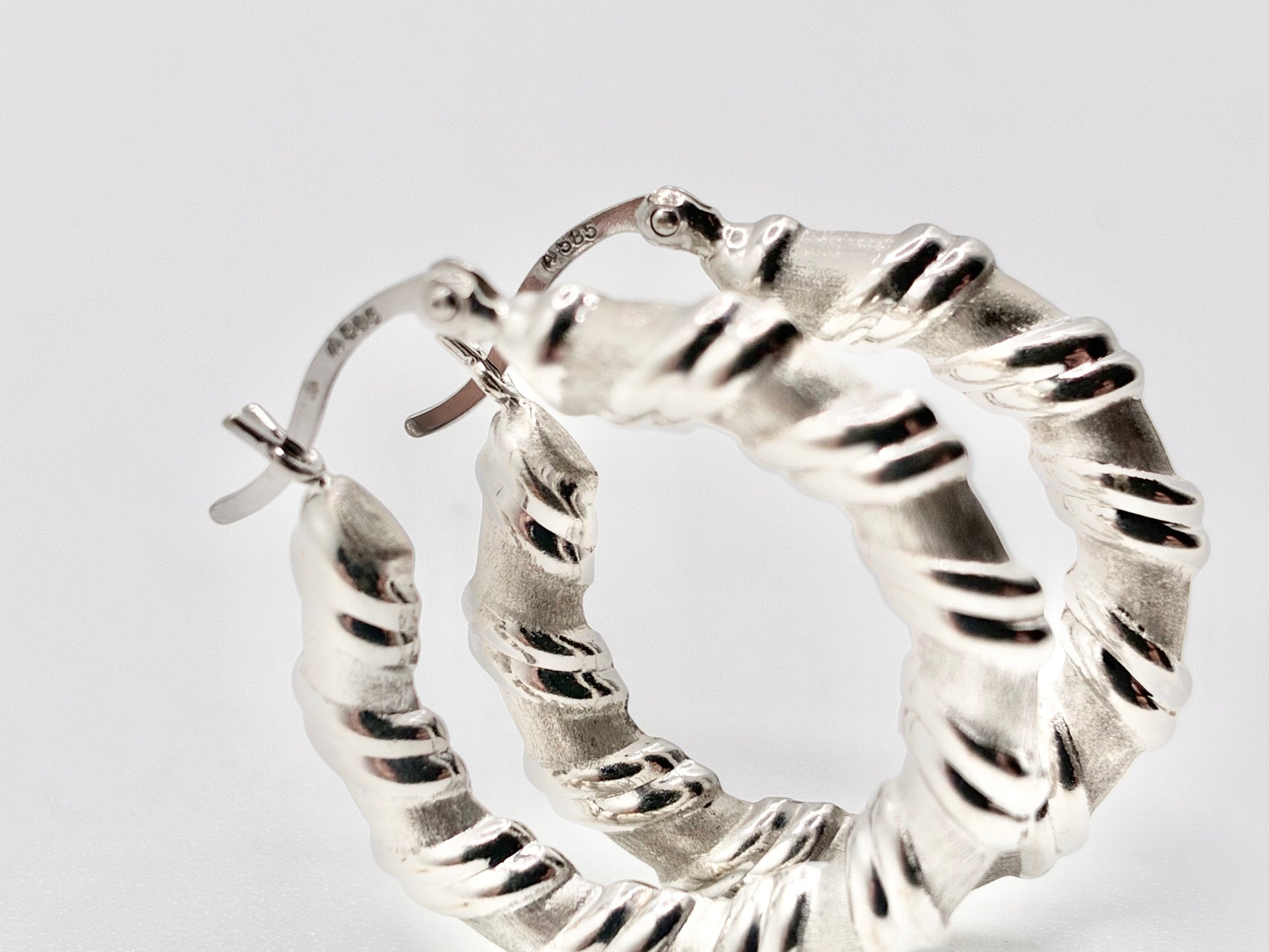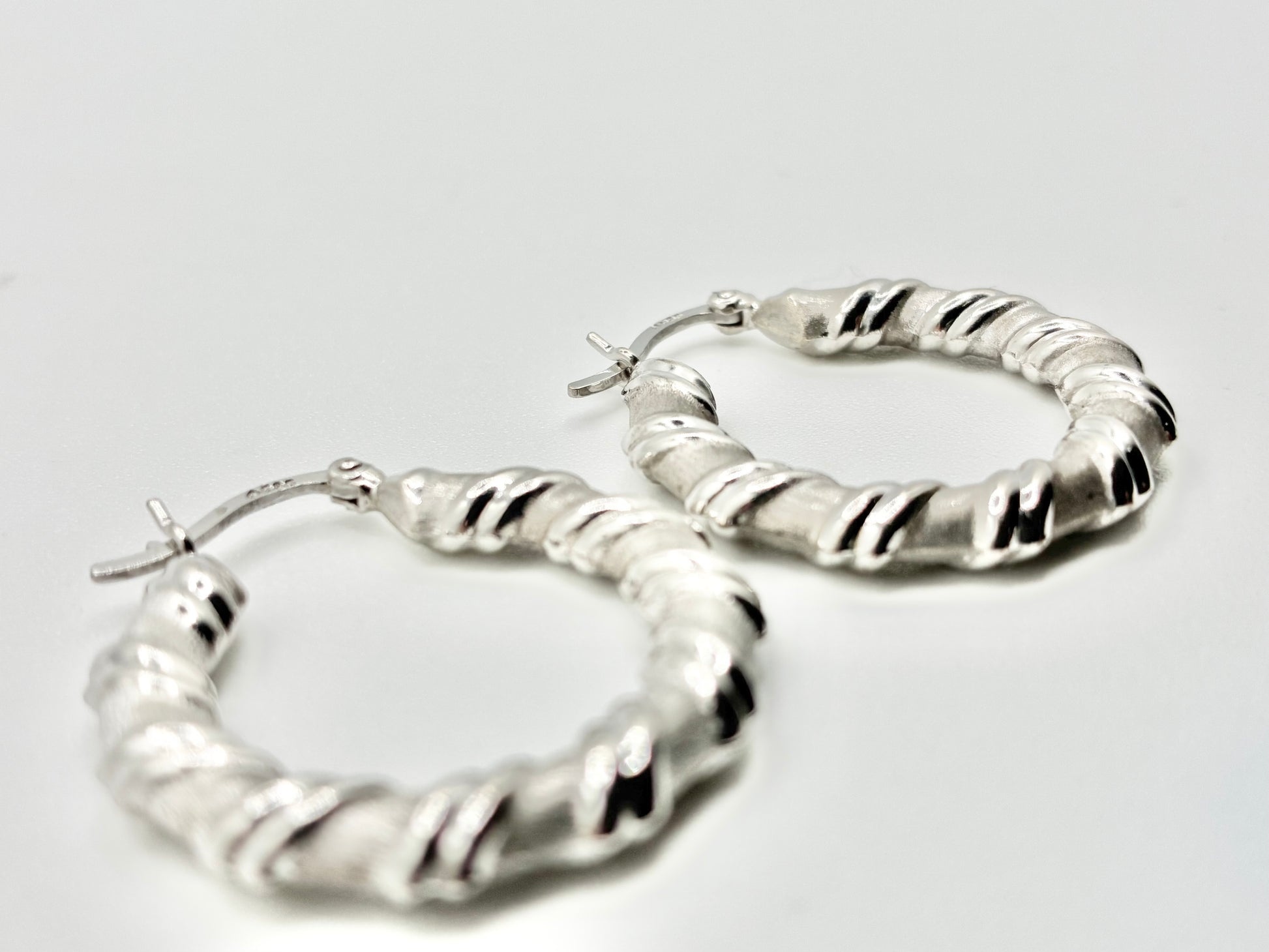 Twisted Hoop Earrings – Silver, Marked 585 A