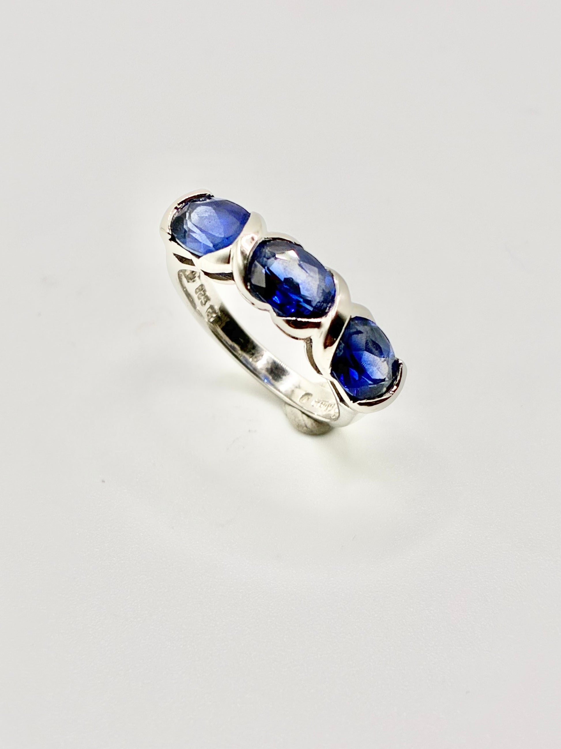 Stones: Three oval-cut blue stones (not gem-lab tested)